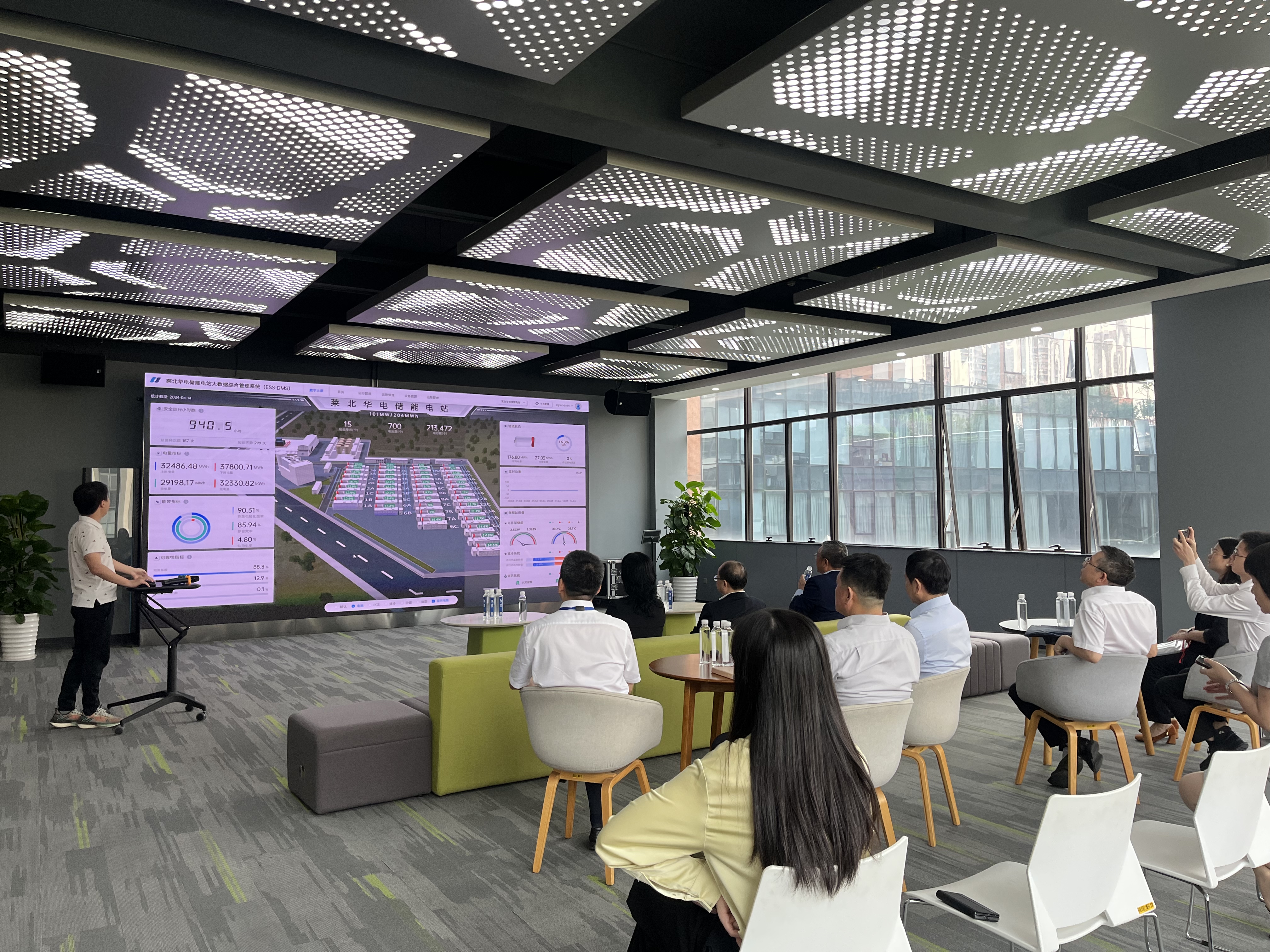 廣東能源集團領導一行參觀了智光企業展廳,對智光電氣在儲能領域的發展與布局進行了充分的調研,并認真聽取了智光級聯高壓儲能技術及儲能電站大數據綜合管理系統的專題匯報。