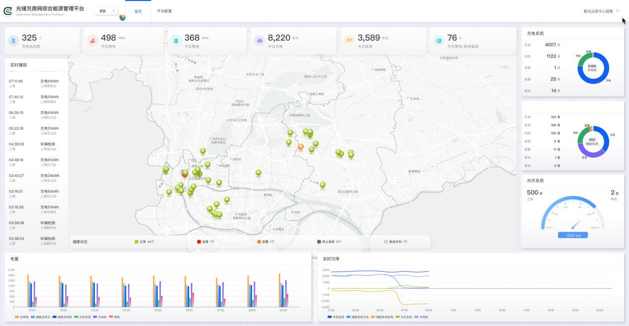 通過大數(shù)據(jù)、云計算、邊緣計算和AI技術開展設備的實時監(jiān)控,智能運維,光儲充系統(tǒng)綜合能量控制與優(yōu)化,參與電力市場交易,響應電網(wǎng)輔助服務。通過充電過程數(shù)據(jù)分析為車主提供電池檢測服務。該平臺基于光伏、儲能、充電樁以及變壓器負荷檢測數(shù)字化物聯(lián)裝置為基礎,可實現(xiàn)充電站微網(wǎng)能量控制獨立部署、運行。其主要功能包括運行管理、設備管理、能源大數(shù)據(jù)、能量管理等4個子功能模塊,分別從提高安全運行監(jiān)管效率、確保設備數(shù)據(jù)全面性、提高設備運行效率、優(yōu)化能量效率等方面為客戶創(chuàng)造價值。