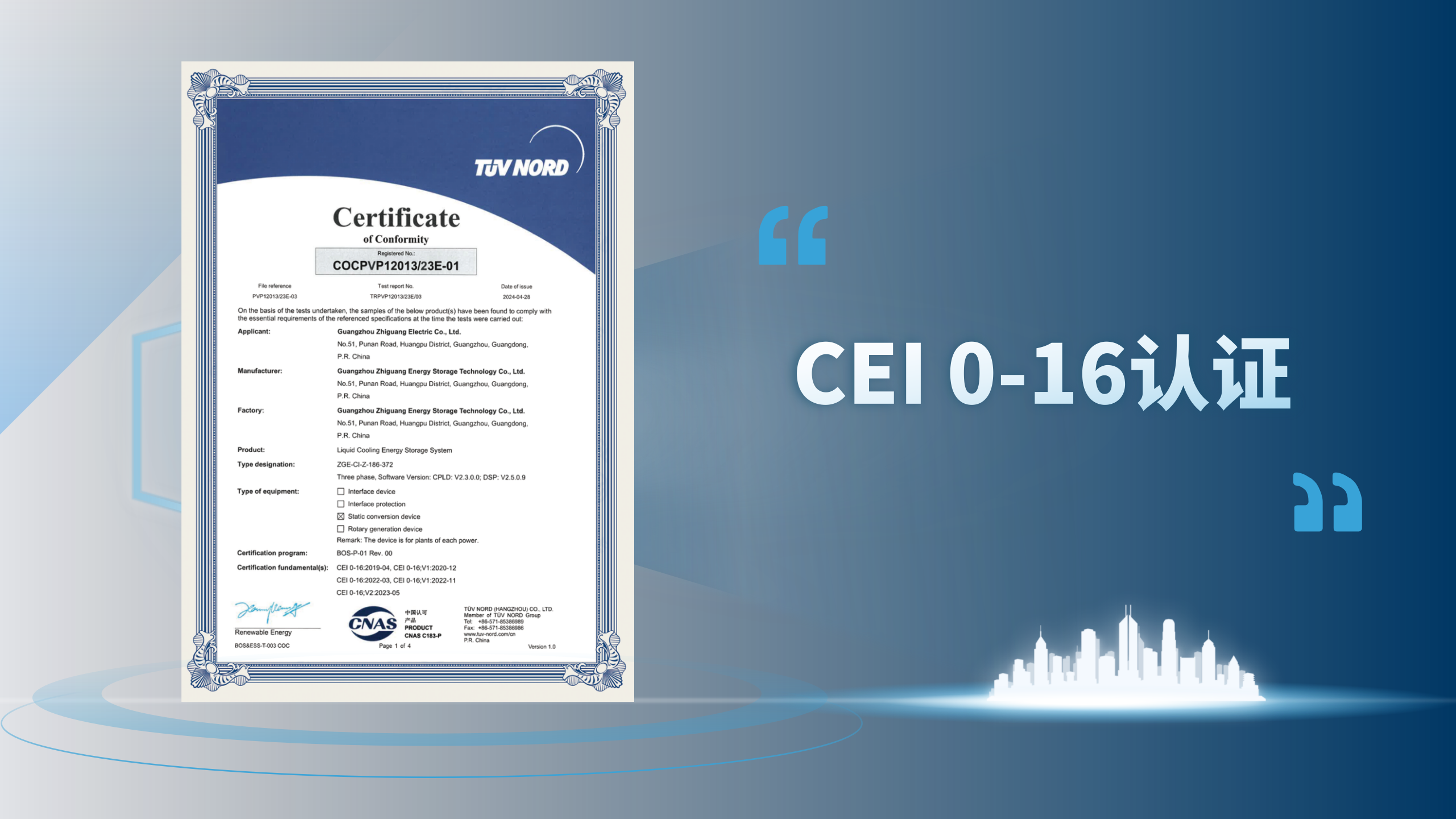 More notably, it passed Italy’s CEI 0-16 grid-connection certification, demonstrating exceptional performance in voltage and frequency ride-through and grid disturbance response. These achievements confirm the system’s technical reliability and grid adaptability under the complex conditions of the European power grid, officially qualifying Zhiguang Electric’s energy storage system for entry into Italy and other mainstream European markets.